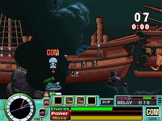 The roster looks solid and cute. But they’re not balance in function. I can’t come up with funny analogy regarding the roster’s balance. So, let’s just say the balance is as bad as weapon’s balance in Ghost 'n Goblin Resurrection. And I happen to pick possibly the worst main but as you can see that the cannon can defeat the boss tank because they’re excel at destroying ground. Some artillery good at destroying ground. Some other good at dealing damage. While other are sly bastard using poisonous weapon. Weaponry characteristic is not the main problem of the roster. It’s the stupid angle limit and firing distance! Combined with wind that changes every turn, quite often than not my aim becomes inaccurate even after making some adjustment on power, which is the easiest kind of adjustment. There’s some occasion, where my shot land too right from the target after increasing the power bar even just a bit from my previous shot that landed too left from the target. Note: I was in left side back then. I blame combination of wind change and the bad fire range. I suspect the power bar scales inconsistently due to bad fire range stats. You know why worms can jump or using various device such as drill or blowtorch? So, they can expand the strategy beyond aim and shoot or they don’t end up doing nothing in awkward position. Andy Davidson has thought everything! Whereas in this game if you end up in awkward position, you can barely do anything because your weapon is just artillery type. Not all but mostly. Maybe the dead end condition is meant to be the usual "mean" or "unfair" part of arcade game. But that’s just so low. Worms has various weapon and gadget in their tiny pocket, whereas these cartoon artilleries only have 2 weapons. At least in Gunbound, the weapon limit is 3. So, the weaponry system feels outdated and pretty bad.